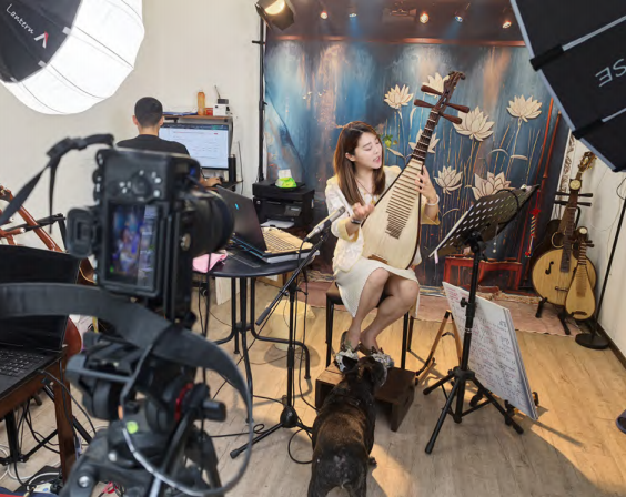 采访快结束时,雨停了,阳光透过云层照进院子。杨婧抱起琵琶,弹了一段《虚籁》,指尖流转间,仿佛听到了她对音乐教育事业的执着追求与深沉情感。她说:“音乐是生活的一部分,就像养花、看山、看海一样,都是艺术。我想让更多人感受到这种美好。”在绿植环绕与宠物相伴的生活中,这位年轻的琵琶老师过着接地气的生活,却以琴声为桥,悄然连接起屏幕内外的故事。她的故事没有惊涛骇浪,却如立秋后的及时雨,以最温柔的方式,浸润着每一颗静待发芽的音乐种子。