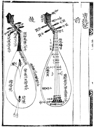 摘要:曲项琵琶抱持姿势由横抱到竖持的演变是如何完成的,学界一直在讨论。本文结合考古实物、图像、文献、田野调查及博物馆藏品等资料,提出隋代至明中期曾流行一种“椿楸制琵琶”。17世纪末琵琶普遍竖抱后,椿楸作为一种琵琶制式的文化惯性,一度在清宫燕飨庆隆舞乐中留存,也曾演变为装饰物。椿楸制琵琶自隋代延续至明清时期,分布于东亚多地,展现出丝路音乐文化交流轨迹。它连接了琵琶的古丝路传统与“新垂直”传统,见证了琵琶从横抱转向竖持、丝路胡乐到中原汉乐的转型,为理解琵琶“华化”进程提供关键视角。