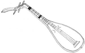 古代四弦曲项琵琶曾有一种椿楸制式。椿楸制琵琶,以背板上着绳系“椿楸”或兼“担环”,系肩带“担绦儿”背于胸前演奏为特征,它是与普通四弦曲项琵琶共同存在的一种制式。目前发现存世椿楸制琵琶的唯一实物藏于日本佐贺县博物馆。其分布从西北到中原,再及朝鲜、日本,也隐约展现出琵琶丝路传统的历史轮廓。