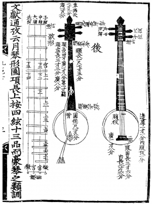 由此,笔者大胆猜想,月琴上的缚弦“春秋”之称,是否为月琴背板“椿楸”在历史进程中的演化?因为无论椿楸,还是春秋,功能皆为器系,区别在于,一个在背板上系担绦儿,一个在面板上系琴弦。