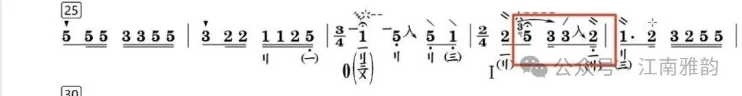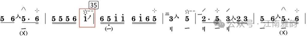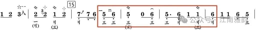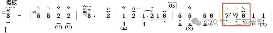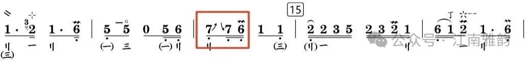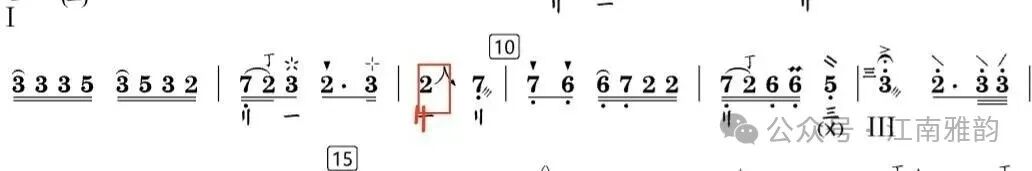 上述演奏手法贯穿于徐先生的整套乐曲之中,在对其老录音的研习过程中均有明显体现。此外,同音异位的处理手法也颇具代表性,只是这类演奏细节在老录音中的呈现不够清晰明确,难以精准分辨。这一技法究竟是徐先生演奏中原本就存在的处理方式,还是当代学院派演奏形成的习惯,若无同期演奏视频佐证,难以确切求证。但从保障乐曲演奏流畅度、丰富音色层次与表现力的角度出发,同音异位的演奏手法同样具有重要价值。简单举例: