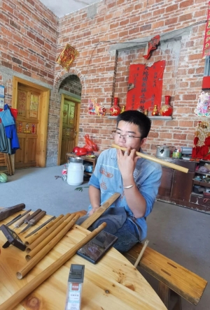 “95后”的徐维笙目前是贺州市市级非物质文化遗产瑶族芦笙制作技艺传承人,也是村民眼中技艺了得的专业乐器制作师。