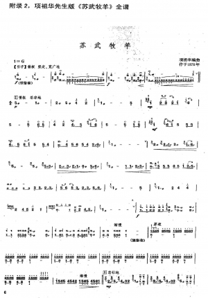 《苏武牧羊》作为扬琴独奏曲,除了前文所提的赵殿学先生的版本之外,还有很多其他的版本,比较优秀的有宿英先生版本、刘希圣先生版本以及项祖华先生版本等。其中项祖华先生版本是目前演奏与教学中最为常用的版本,也是项祖华先生的代表作之一。