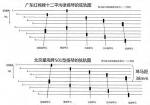 对比一下两种五排琴马扬琴的弦轨设计,见图3。