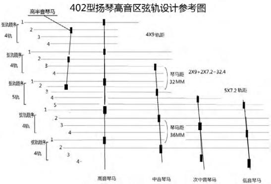 提出弦轨概念并做出初步探讨,也许是幼稚的不成熟想法。但从本文总结后的内容中思考,隐隐感到从弦轨研究的角度看待各种扬琴的弦轨现象是可行和值得关注的。笔者在乐海乐器曾做过调整402型扬琴高音区弦轨顺序的实践,虽然没能普及但是可行的,对研发产品和规范弦轨顺序有着积极的意义。