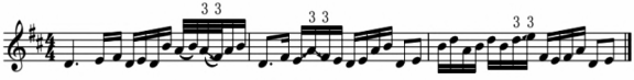 谱例7:《满江红》大过门第12小节(小二度回滑)