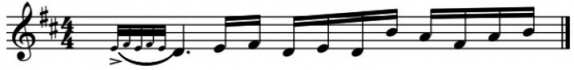 谱例14:二胡曲《江南春色》第一个音