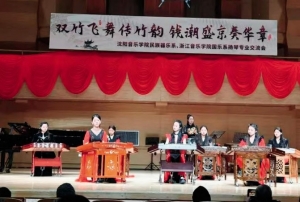 扬琴作为一件历史悠久、音色优美的民族乐器,在当代音乐舞台上不断展现出新的活力。由沈阳音乐学院民族器乐系联合浙江音乐学院国乐系主办的“双竹飞舞传竹韵钱潮盛京奏华章——浙江音乐学院国乐系与沈阳音乐学院民族器乐系扬琴专业交流会”于2024年12月13日在沈阳音乐学院音乐厅举办。本场扬琴专业交流音乐会,汇聚了众多优秀曲目,演绎出风格各异的现代扬琴音乐作品,既有展现传统音韵的曲目,又有融合现代音乐元素,如爵士、摇滚风格等,展现时代气息的创新之作,为我们研究现代扬琴的创作与演奏提供了宝贵的素材。本场音乐会不仅是一场音乐盛宴,更是对现代扬琴艺术发展的一次集中展示和探索。