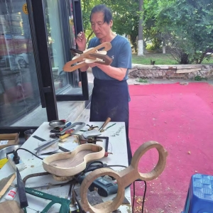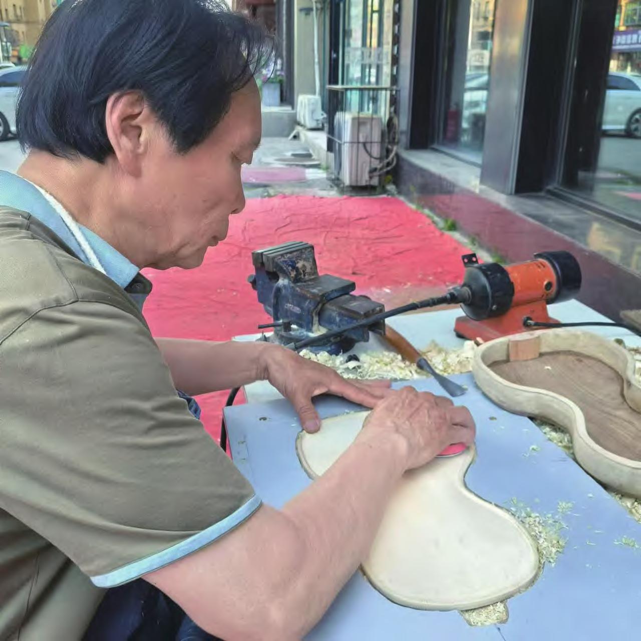 一号葫芦形琴声音通透,音质音量达到了理想的效果。在先后的几年时间里,张昱又研发出阮形、缺角形、扇形等5把创新乐器。2023年,他开始研发膜板相结合的民族低音乐器。他认为,低音乐器追求的特点就是厚重、丰满通透。他采用安装内胆的方法,这种优势体现了复共鸣原理,板膜结合则增强了振动共鸣,琴的外观是以葫芦阮为蓝本。