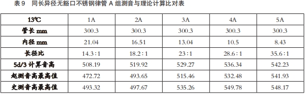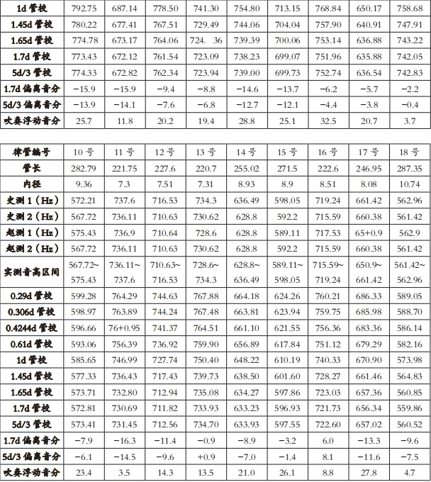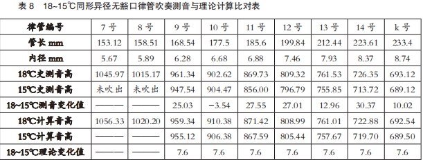 ①同形管指长径比相同的律管。表8中的律管长径比全部为26:1。