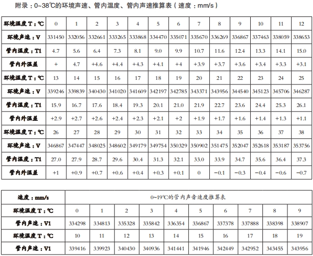 备注:对于不习惯使用计温开管律高计算公式的读者,也可查阅本表推算的各环境温度下的管内声速(19℃以上可不考虑管内外温差,直接用环境声速计算),直接代入开管频率公式