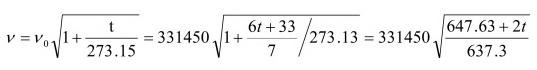 学界公认0℃、15℃、25℃空气中声速分别为331m/s、340m/s、346m/s。一般认为声音速度与温度间的关系可简略地表达为v=331.5+0.61t(公式②,0℃声速约为331.5m/s,t为环境温度)。2007年,新疆大学物理科学与技术学院研究团队使用超声波发生器,测量空气中声速与环境温度关系的新公式计算结果与之相符合(相差1米以内):“在室温下,干燥空气中的声速公式为