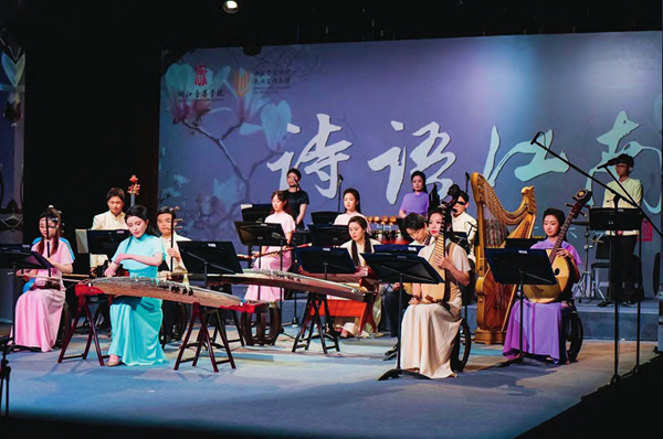 2023年5月11日19点30分,由浙江音乐学院主办、浙江音乐学院民族室内乐团承办、浙江音乐学院国乐系协办的浙江音乐学院民族室内乐团首个演出季首场音乐会“诗语江南”在浙音标准音乐厅隆重上演,指挥家王甫建担任艺术总监,与副团长周展一同带领浙音民族室内乐团献乐“江南诗画”。此次音乐会不仅承袭了中国传统的器乐合奏形式,还展示了新型民族器乐演奏模式,以及新型民族小型乐曲的创作模式。