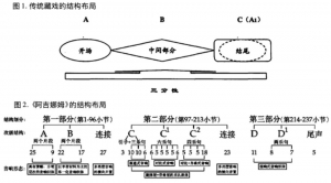 在结构上,传统的藏戏音乐由“顿”——开场,“雄”——正戏,“扎西”——吉祥的结尾三个部分组成,形成了首尾基本固定,中间灵活多样,不变与可变相结合的三部性结构框架和表演程序[2](见图1) 。与传统藏戏的结构形态相似,作品《阿吉娜姆》也呈现出三部性的结构特征(见图2) ,呼应了传统藏戏程式化的开场、正戏与结尾三个部分。