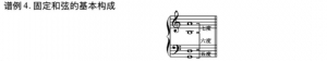 在《阿吉娜姆》中,作曲家通过引入具有固定音程构成形态的和弦及其在作品中的各移位或变形进而使该音响产生了前后互文、相互呼应的效果,并加强了作品各部分、段落之间的联系。谱例 4 展示了该和弦的基本构成样式。其以五声化音高为基础,形成了以 G 音为根音的五度—六度—七度音程叠置。该和弦在随后的发展中主要采取移位式发展。作曲家力图保持和弦基本构成关系的不变性,进而使得该和弦具有较为鲜明的音响与结构辨识度。
