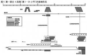从上图可见,《阿吉娜姆》在传统藏戏的结构基础上对三分性结构的内部进行了调整与创新,并以各结构段落中的不同音响织体形态诠释了传统藏戏音乐的不同音乐场景。作品的首尾两个部分呈现出以音响为主体的建构思路,中间部分则采用了旋律加伴奏的织体模式,与首尾两端的音乐形象形成了对比。