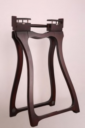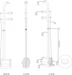 在民族乐器的研发中,人体工程学的应用是美学设计的重要体现。通过考虑演奏者的身体结构和演奏习惯,设计师们可以优化乐器的形态和尺寸,使其更加符合人体工学原理,从而提高演奏的舒适度和效率。例如,对儿童二胡的琴杆和琴筒进行人体工程学设计,下轴中心至琴筒上沿由510mm缩小至370mm;为了适用儿童的手型,千斤的宽度由20mm缩小至18mm,使其更加贴合演奏者的手臂和手掌,减轻演奏时的负担(见图4)。例如一种支撑高度可调的琴架,可调整支撑琴处的高度位置,适应于不同的应用场景,适应于不同身高的人群使用的效果(见图5)。