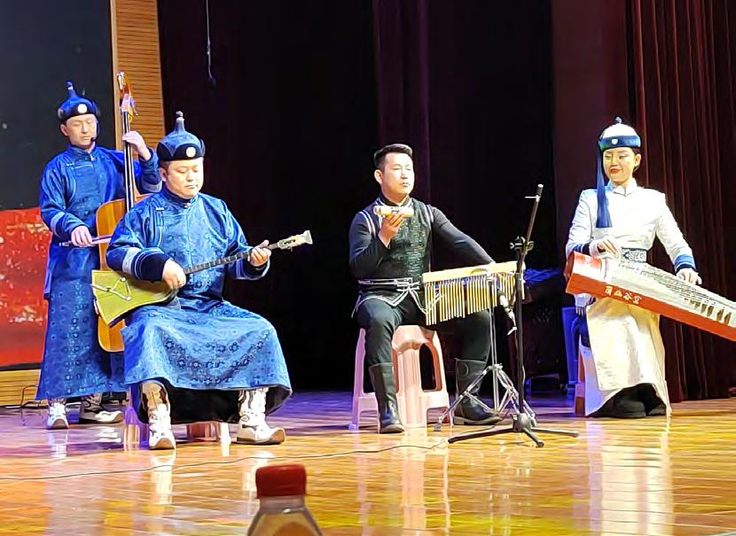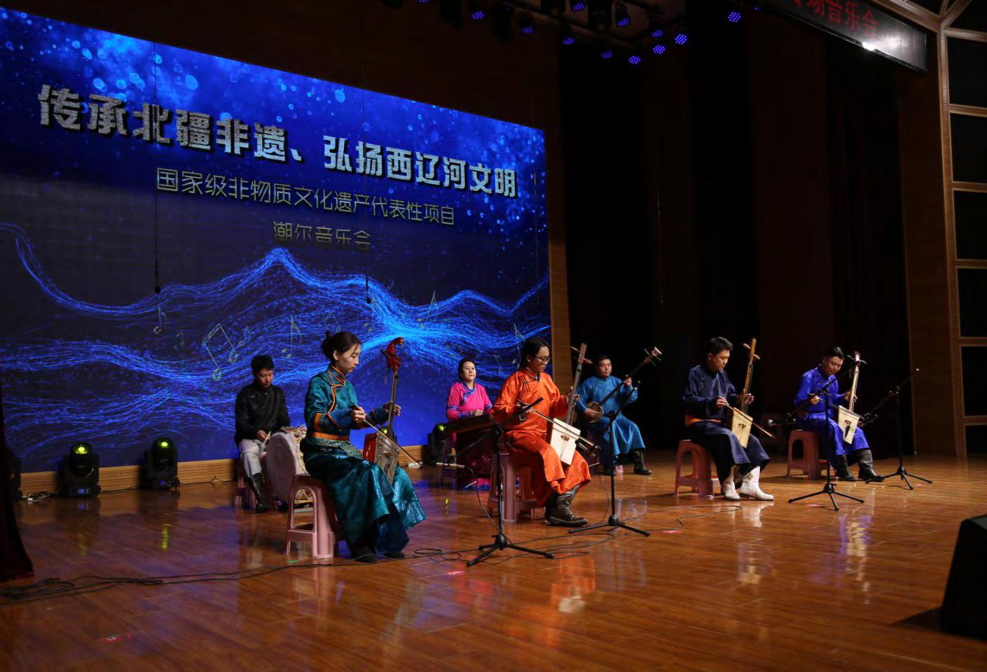 本次研讨会中还有一场潮尔音乐会为研讨会锦上添花。通辽职业学院学生表演的马头琴齐奏《万马奔腾》,娜布其的潮尔独奏《故乡的风》,科尔沁乌兰牧骑表演的《赞歌》,潮尔齐奏《乌云山丹》《陶格套胡》,著名潮尔演奏家金刚用潮尔表演了科尔沁史诗《呼唤骏马》,都丽娜演唱了悠扬的长调民歌《红走马》,铁明用四胡自拉自唱了《乌兰哥哥》……这些具有浓郁草原风格的节目,都给观众留下了深刻的印象。