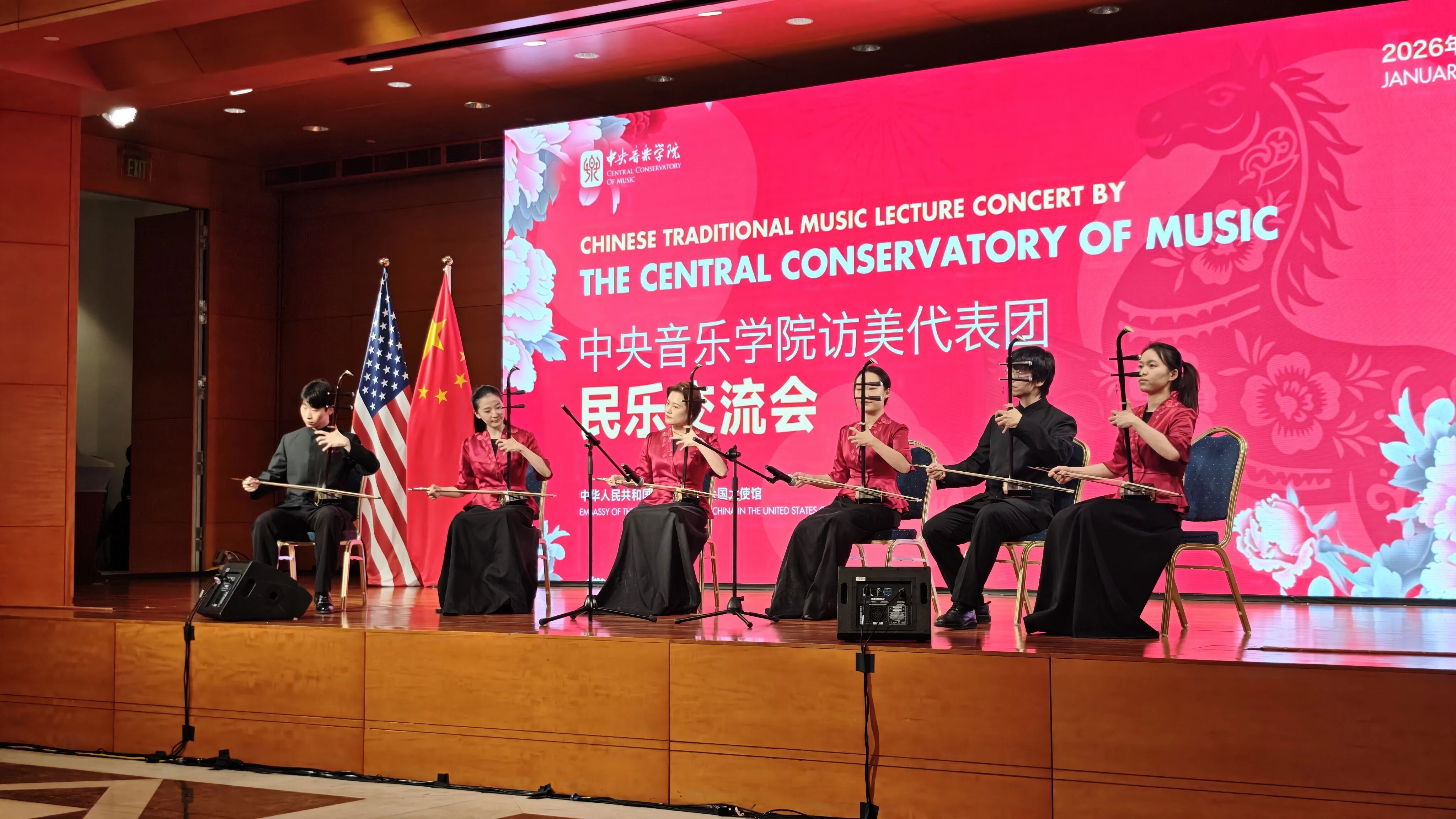 美国当地时间2026年1月28日至30日,应费城交响乐团邀请,中央音乐学院院长于红梅教授率中央音乐学院民乐代表团赴美访演。在费城交响乐团的主场,中央音乐学院演奏家携手这支世界顶级乐团,为这座美国历史名城呈现了两场精彩非凡的音乐会。音乐会结束后,代表团还在费城与世界音乐名校柯蒂斯音乐学院开展了学术交流,并在位于华盛顿的中国驻美大使馆举办了交流音乐会。此次中央音乐学院赴美访演系列活动大获成功,在大洋彼岸镌刻下具有历史意义的中国音乐印迹,也为中美音乐文化交流史书写了崭新的篇章。