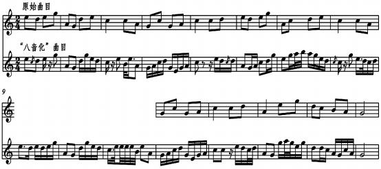 谱例1-1:【双喜临门】慢板乐段的原始曲目与“八音化”曲目,第一段落