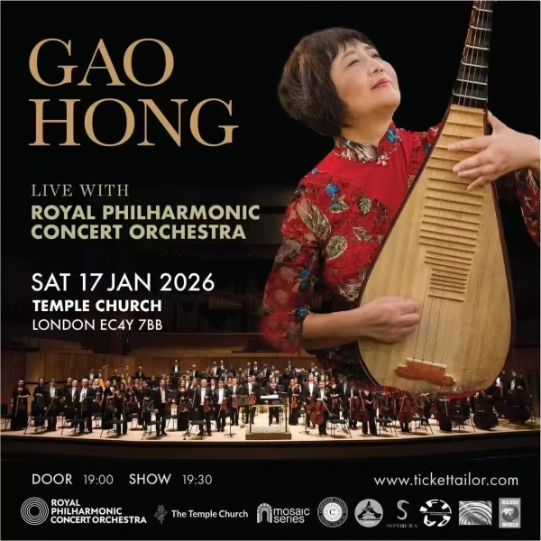 中国琵琶演奏家、作曲家高虹日前在伦敦市中心的圣殿教堂携手英国皇家爱乐乐团举行音乐会。整场演出以琵琶为主奏,通过协奏曲与合奏形式,与弦乐、管乐展开深度融合,吸引约500名观众到场,现场座无虚席。