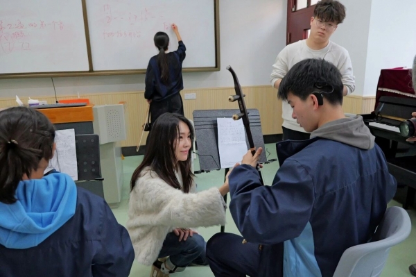不久前,在杭州市文汇学校的新年晚会上,4位听障学生用二胡演奏了《虫儿飞》。当旋律响起,学生们轻轻摆动身体,弓子在琴弦上稳稳地拉奏,虽然听不到自己演奏的声音,却凭着肌肉技艺和视觉引导,奏响了心中的歌。这些从心底流淌出来的音符,饱含听障学生对生活的热爱与向往,也蕴含了他们两个多月来所付出的比健听人多出数倍的艰辛与努力。