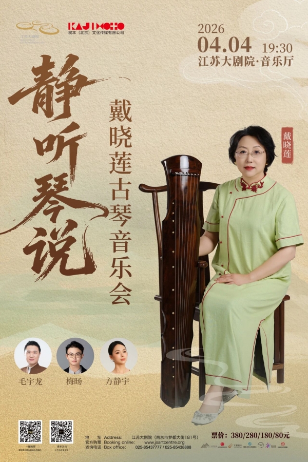 清明雨绵长,草木在湿润里一蓬蓬地新生。 4月4日,广陵派一代传人戴晓莲教授将携三位青年艺术家,以指尖流转的娴熟技艺,让千年丝桐琴韵缓缓流淌,演绎一曲曲清越雅致的古典清音。 从独奏的空灵意境到合奏的协同共鸣,从传统古曲的原汁原味到跨界改编的新意盎然,这场音乐会以丝桐为媒,让千年清音与当代审美碰撞交融,铺展跨越时空的听觉长卷,邀君共赴这场雅致的听觉诗旅。