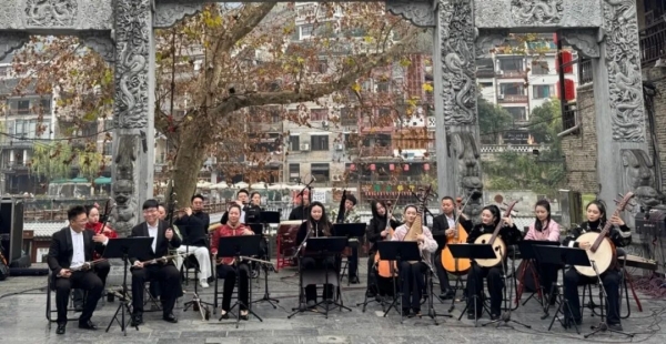 1月18日至19日,贵州省民族乐团走进黔东南州镇远古城景区开展多彩贵州景区驻场文艺演出系列活动,以丝竹雅韵碰撞千年古城文脉,为来自五湖四海的游客带来了一场沉浸式文化盛宴 。