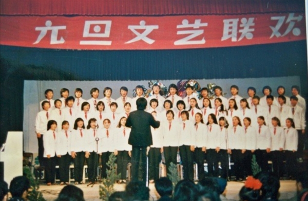 1987年,黄岩师范元旦文艺汇演,陈波担任合唱指挥。