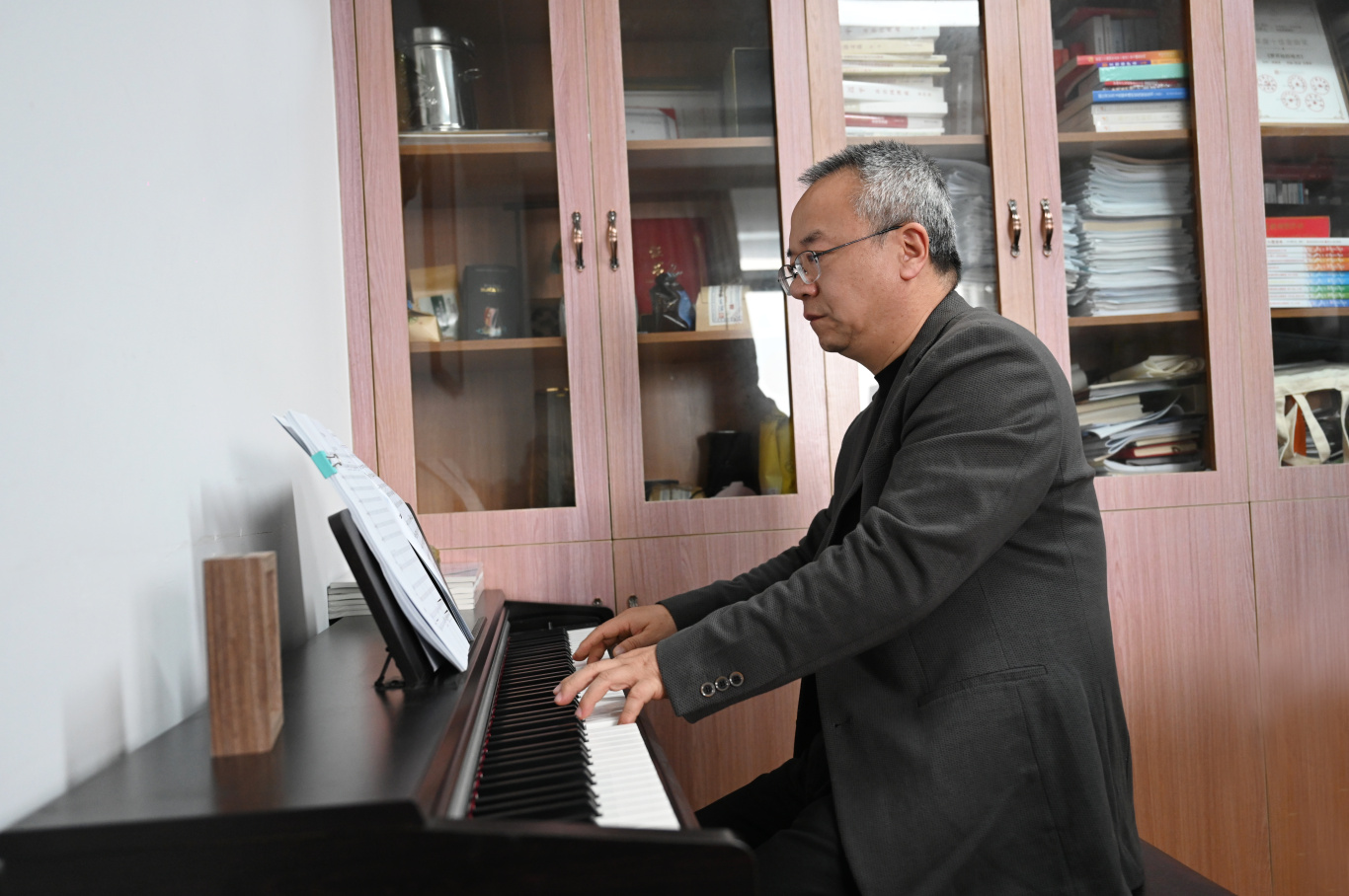 但他明白,内心的那根音乐之弦从未断绝。下班回到家,书房里一柜柜音乐书籍和CD整齐排列着。夜深人静时,他有时坐在钢琴前随手弹奏,有时在稿纸上写下几句乐评。白天是公文的逻辑,夜晚是音符的自由。
