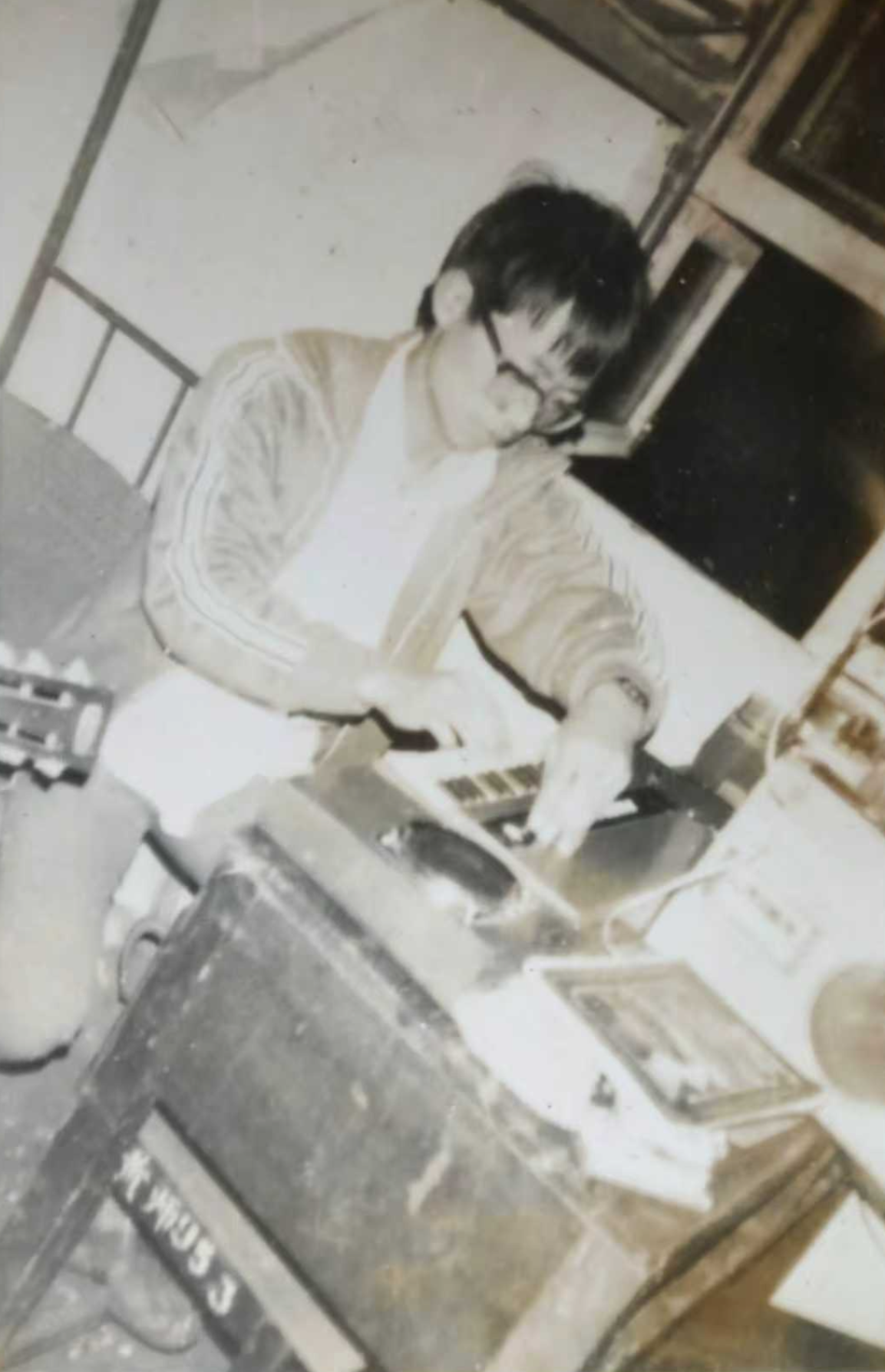 1986年,在黄岩师范宿舍,陈波正在弹电子琴。
