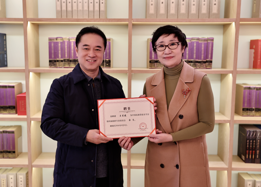 中国民族管弦乐学会会长吴玉霞为王甫建颁发聘书
