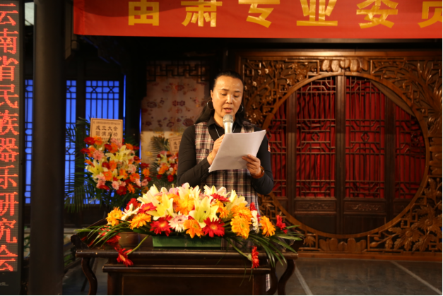 葫芦丝巴乌艺术委员会秘书长李颖代表云南省民族器乐研究会葫芦丝巴乌艺术委员会致辞