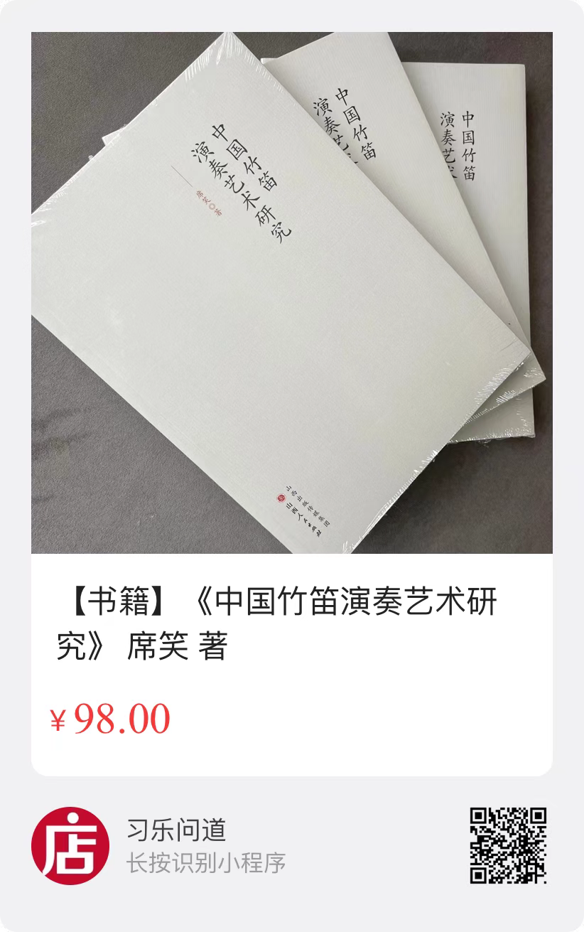 作者席笑寄语:2018年底,我开始着手写作《中国竹笛演奏艺术研究》一书,历经三年有余,如今终于问世。她积聚了我个人三十年来对中国竹笛演奏多个方面的一些认识,包括乐器性能、基本功、诠释、日常练习……欣慰之余,也敬请诸位有识之士提出宝贵意见。