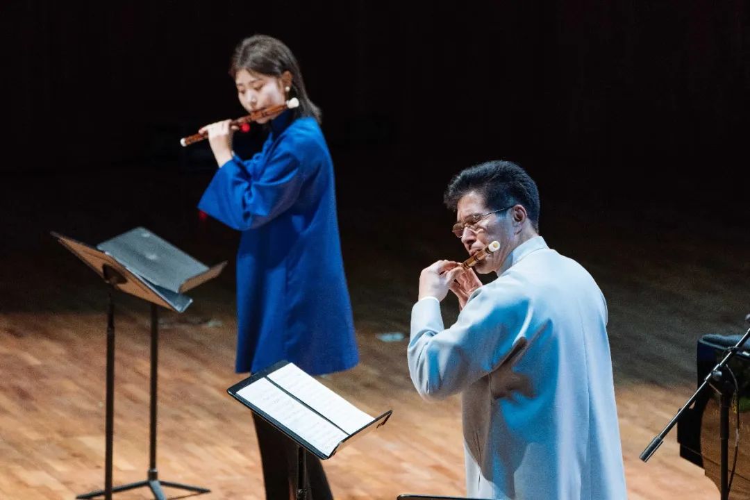 第三板块的《相逢》《顶嘴》和《热情与冷漠的邂逅》,让乐迷们大呼过瘾。音乐会也在这一波多彩的表演中来到高潮,张维良与弟子李芝含的默契合作,真是让人赏心悦目,每一曲中,通俗易懂而又生动有趣的音乐形象跃然眼前。奏而优则作,从张维良的创作中可以听见笛箫音乐的多样化音乐表达,让传统音乐的传承发展有了开阔的路径。