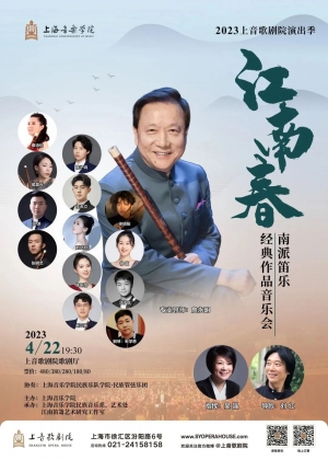 本场音乐会将由詹永明教授带领上海音乐学院竹笛专业本硕学生演奏,由上海音乐学院民族乐队学院·民族管弦乐团协奏,吴强教授指挥,刘红教授导聆,共同演绎由南派笛子宗师赵松庭、陆春龄;作曲家顾冠仁、钱兆熹、罗伟伦、曾加庆;演奏家郑济民、詹永明等人创作的优秀南派笛乐经典作品;青年笛子演奏家章诗怡也将首次上演她的新作《春暖》。本次音乐会将是詹永明教授师生对江南笛文化的艺术传承发展之旅。