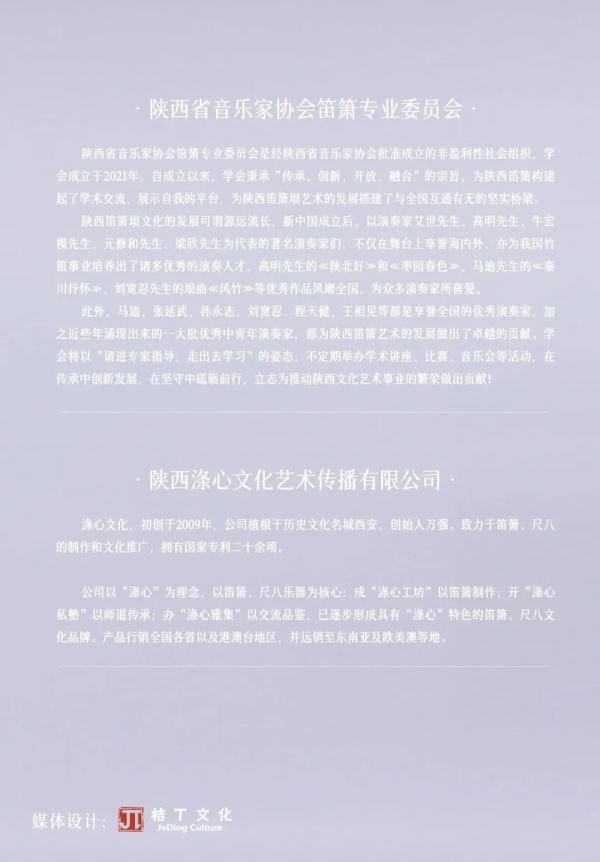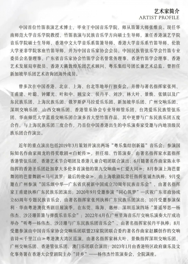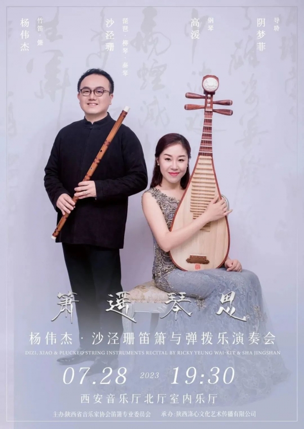 中国首位竹笛表演艺术博士杨伟杰、著名弹拨乐演奏家沙泾珊将于2023年7月28日在西安音乐厅北厅室内乐厅举办“箫遥琴思” 笛箫与弹拨乐演奏会,本场演奏会是由陕西音乐家协会笛箫专业委员会主办,陕西涤心文化艺术传播有限公司承办的公益交流音乐会。