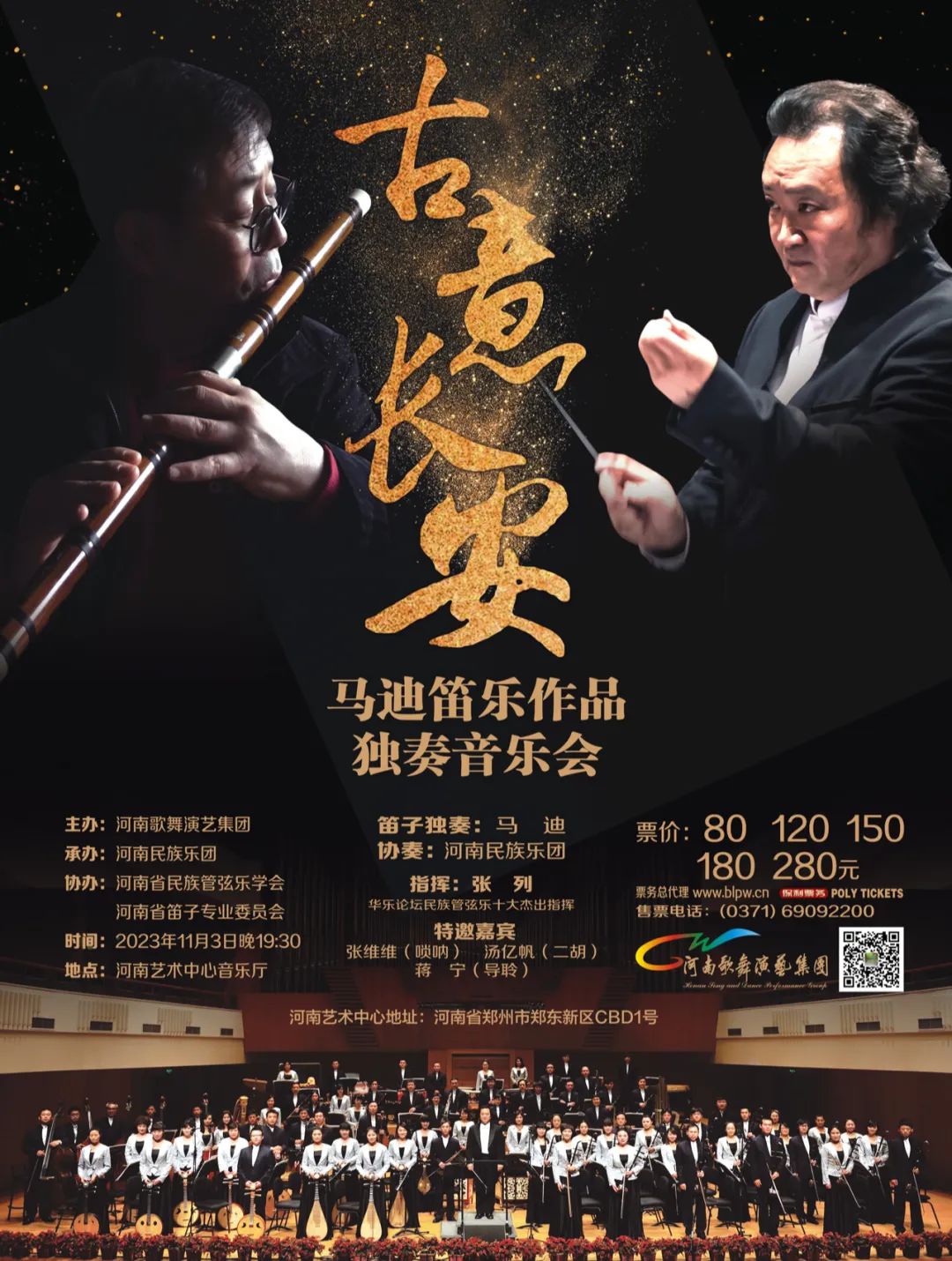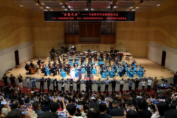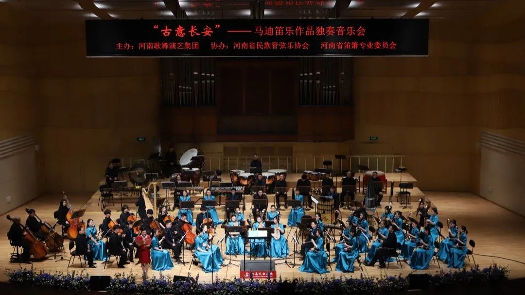 2023年11月3日,河南艺术中心音乐厅座无虚席,“古意长安”马迪笛乐作品独奏音乐会在这里盛大举行,一票无求。音乐会由河南歌舞演艺集团主办,由河南省民族管弦乐学会、河南省笛箫专业委员会协办,河南省民族乐团协奏,华乐论坛民族管弦乐十大杰出指挥张列先生执棒指挥,著名青年笛箫演奏家蒋宁导聆。