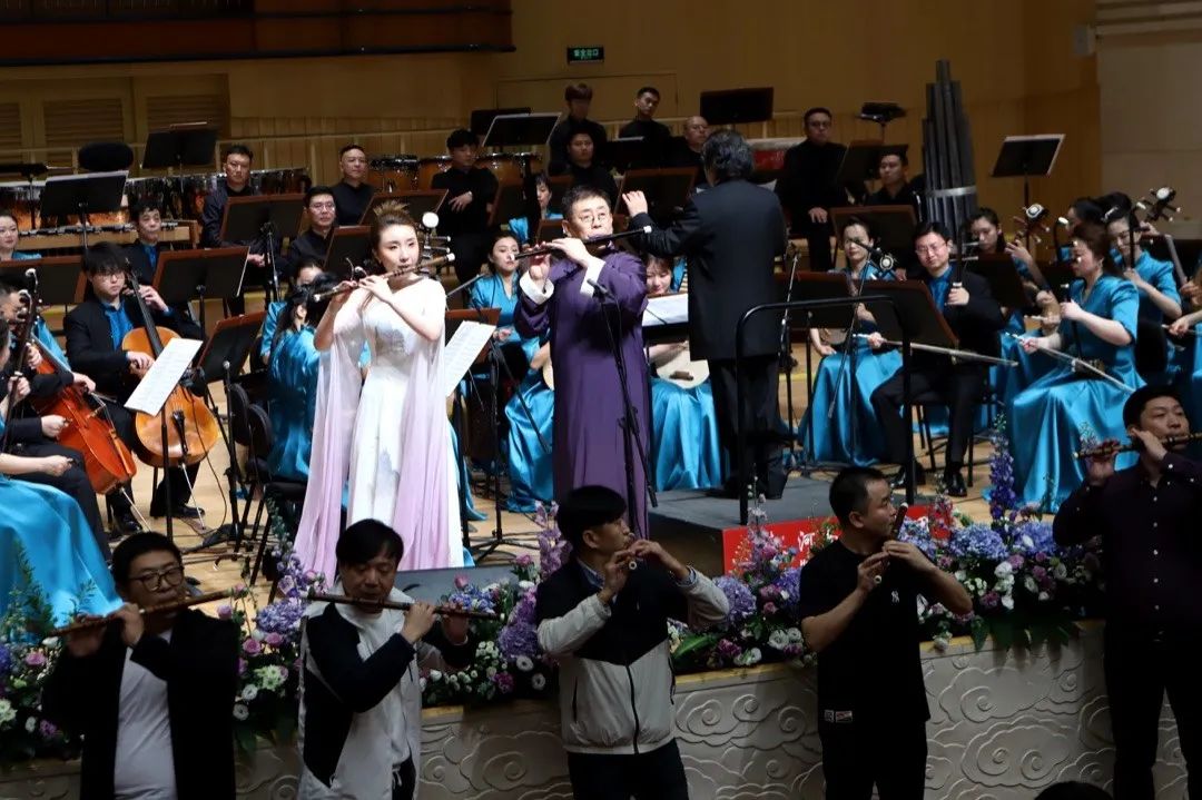 该场音乐会的成功离不开艺术家们的付出,马迪先生、执棒的著名指挥家张列先生,协奏的河南民族乐团,导聆蒋宁女士,以及台前幕后所有为音乐会奔波的工作人员。该场音乐会是蒋宁女士的导聆首秀,她雍容典雅、大气把控、理解深刻,把马迪先生的笛箫艺术很好地进行了诠释与传递,也离不开台前幕后的桃李门生的共同努力。马迪先生的弟子王建宏、万强、王小刚、陈冬等极力促成了这次音乐会,各地弟子团结一致、奔走相告并纷纷带领自己的学员从四面八方来豫,感受并学习马迪先生的笛乐艺术及他的人格魅力、大师风范。