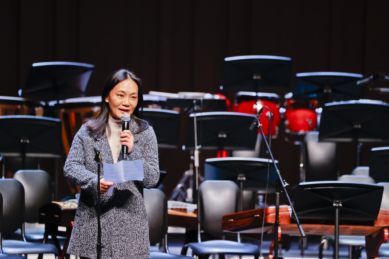 上海音乐学院出版社副社长兼副总编辑陈欣代表上海音乐学院出版社致辞。她表示,《陆春龄竹笛艺术经典作品集》集结了陆春龄先生多年来的经典演奏作品和原创音乐作品,涵盖了竹笛演奏的众多风格和曲目类型。每一首曲目除了提供标准的乐谱外,更有极为详细的曲目介绍和演奏提示。除此之外,本书还凝聚了陆春龄笛乐风格的评论文章,汇集了众多陆先生的嫡系弟子和音乐评论家们对陆先生笛艺的研究,以及对陆先生的缅怀。这本书展现了陆先生卓越的演奏技巧、丰富的艺术情感和非凡的艺术成就,它的出版是我社学术高地的又一力作,同时又有力推动了中国竹笛艺术的传承与发展。衷心祝愿《陆春龄竹笛艺术经典作品集》能够得到广大音乐爱好者和专业人士的喜爱和认可,也希望陆春龄先生的笛音绕梁永世、代代传承,并预祝音乐会圆满成功。