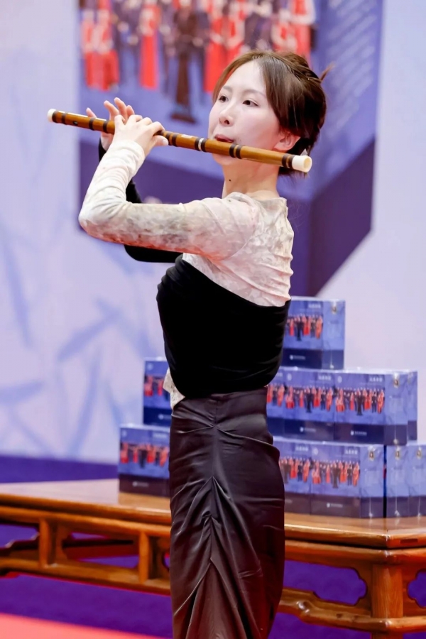 上海音乐学院青年教师陈泓璇及在读研究生陈善治、上海民族乐团青年演奏家高雅、山东艺术学院竹笛教师李昊洋,分别代表“上海音乐学院竹笛乐团”的第二期、三期、五期团员为与会嘉宾进行了精彩的现场表演。