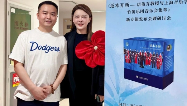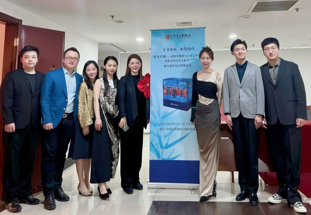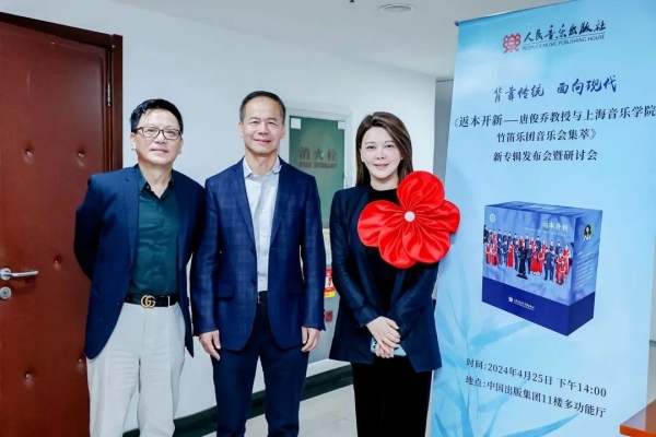 2024年4月25日下午,人民音乐出版社新专辑《返本开新——唐俊乔教授与上海音乐学院竹笛乐团音乐会集萃》发布暨研讨会在中国出版集团11楼成功举行。