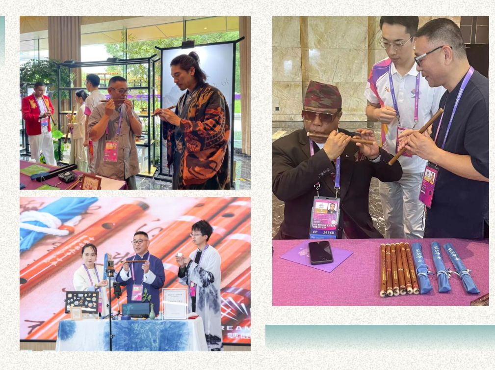 2019年,丁志刚开通账号“一笛一箫”抖音云课堂,拍摄竹笛制作技艺、箫制作等短视频1000多条,收获粉丝15w之多。同时,他还通过网络直播竹笛制作过程,与网友在线交流,这种短频快的传播方式给传统手艺的扩散带来了意想不到的效果。截至目前,丁志刚受邀参加国内外大大小小的非遗活动1000余场,最远到过摩洛哥。去年亚运会期间,丁志刚受邀参加亚运会赛时文化活动,在亚奥理事会大家庭总部饭店展示杭州非遗项目中泰竹笛。“能够参与杭州亚运文化活动,我真的非常开心、深感荣幸,也非常珍惜这千载难逢的好机遇”,丁志刚说道。以笛为媒,唱响传统文化,讲好中国故事,丁志刚全身心参与其中,努力给国内外嘉宾留下美好记忆。