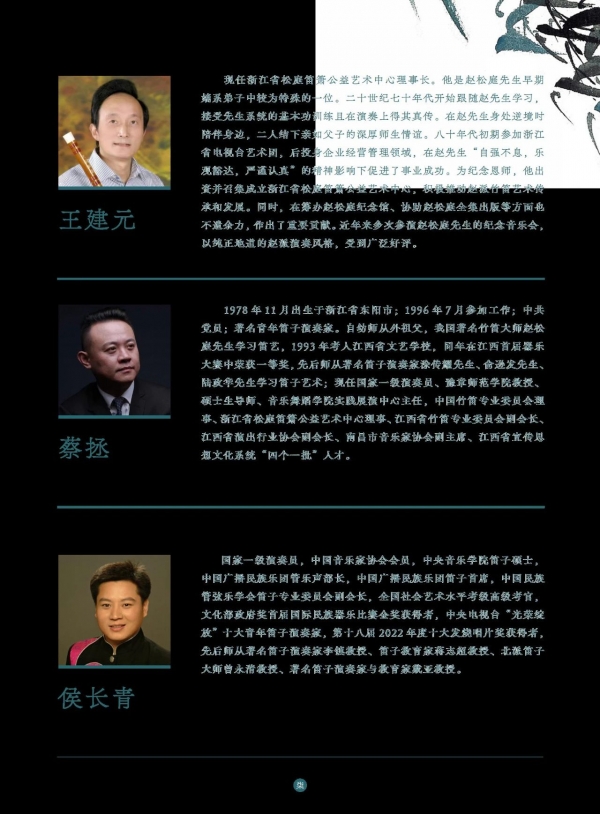 “松庭流芳”竹笛名家名曲音乐会的成功举办,不仅是对赵松庭先生诞辰100周年的最好纪念,更是对中华优秀传统文化和中国民族音乐文化的一次有力传承与弘扬。此次音乐会不仅展示了当代中国笛子艺术的独特魅力与发展成果,也激发了社会大众对传统文化的热爱与传承意识,让更多的人了解、走进民族音乐的艺术世界,感受民乐前辈艺术家对中国民族器乐艺术的执着追求和奉献精神,传承他们对中华优秀传统文化的无限热爱与深厚情感,共同推动中国民族音乐事业走向更加辉煌的未来。