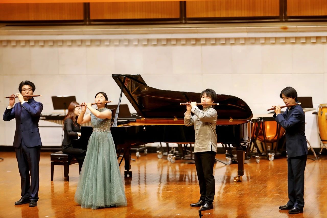 音乐会以《第一竹笛十重奏——梦的呼唤》(2023)拉开序幕,作品以江南音乐元素贯穿始终,歌颂了上海音乐学院民族音乐系前辈们的伟大成就,表达了作曲者对前辈们的无限缅怀。