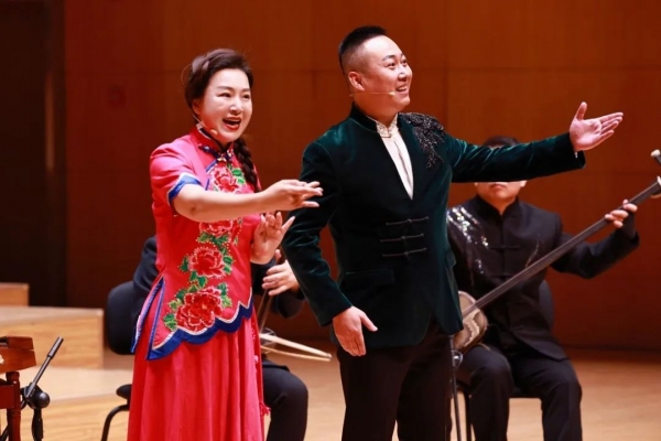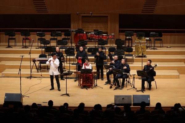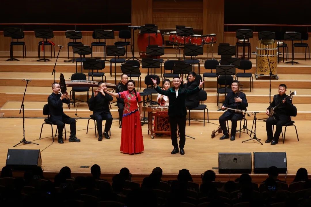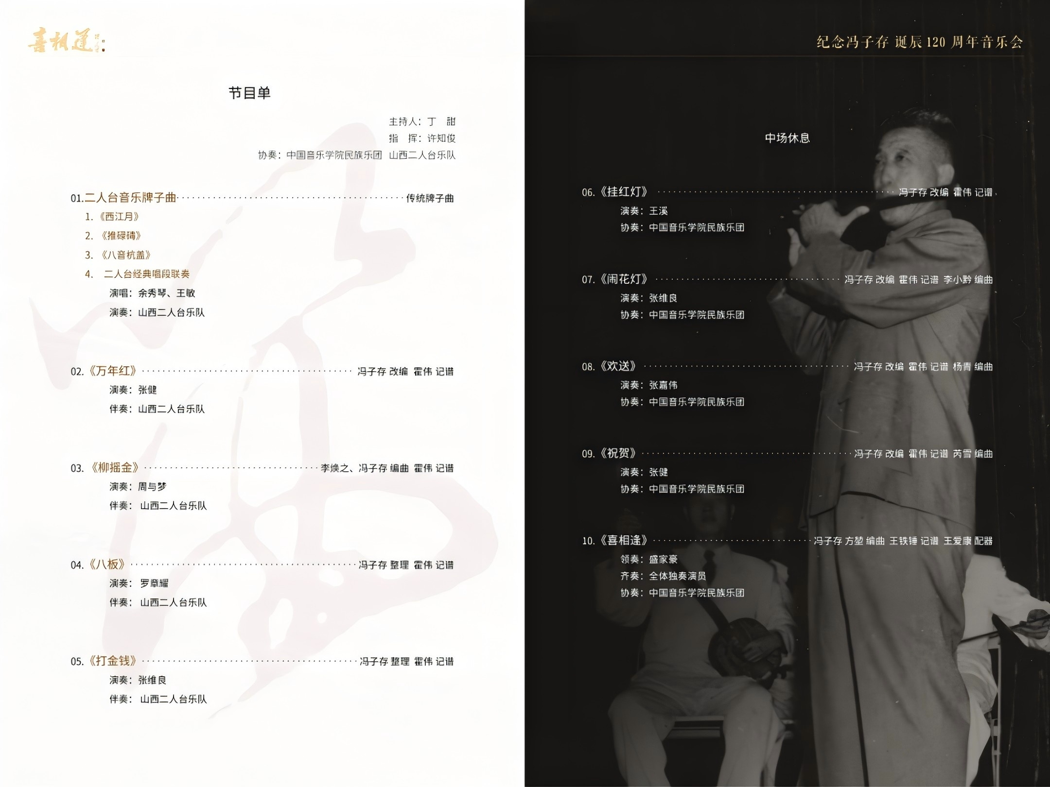 音乐会正式开始。上半场呈现冯子存二人台风格的作品,由山西二人台乐队伴奏。