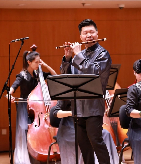 下半场则着重体现冯子存传统笛子作品的魅力,由中国音乐学院民族乐团协奏。张维良将冯子存的作品改编成笛子协奏曲,这其中的艺术含量及创新力不言而喻。