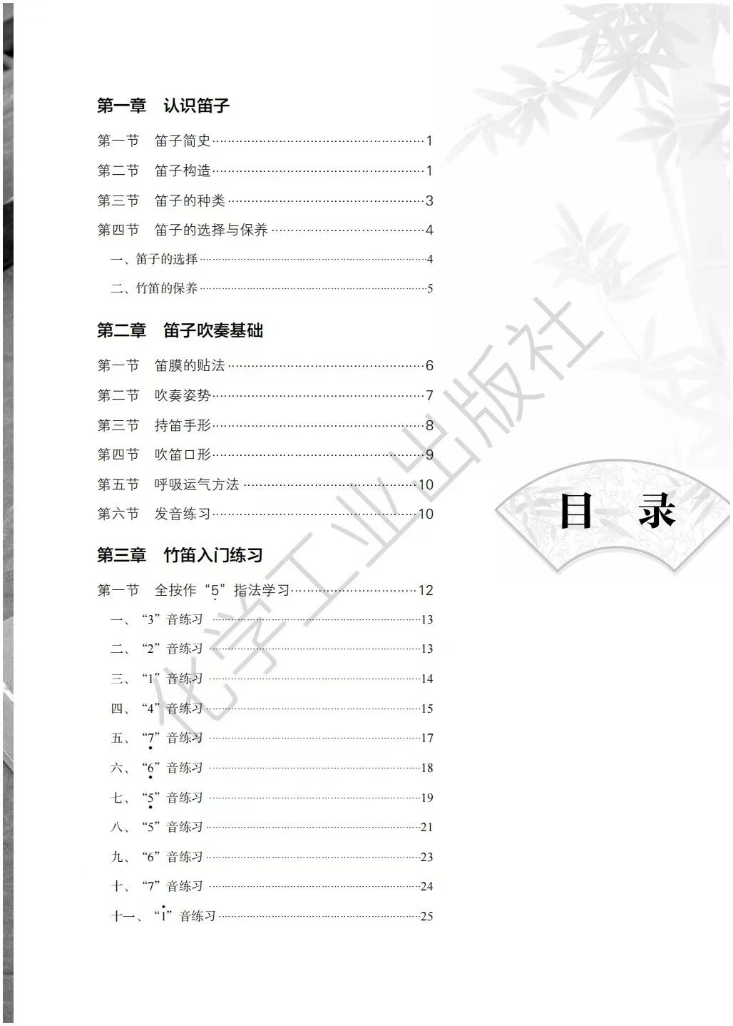 从竹笛构造、指法、气息运用等基本知识入手,逐步引导学习者掌握竹笛演奏基本技法;精心编排大量练习曲,同时融入丰富的传统民族民间音乐与歌曲,让学习者在实践中巩固技能、提升水平,还能在熏陶中领略中华优秀传统文化音乐的独特魅力与深厚底蕴。