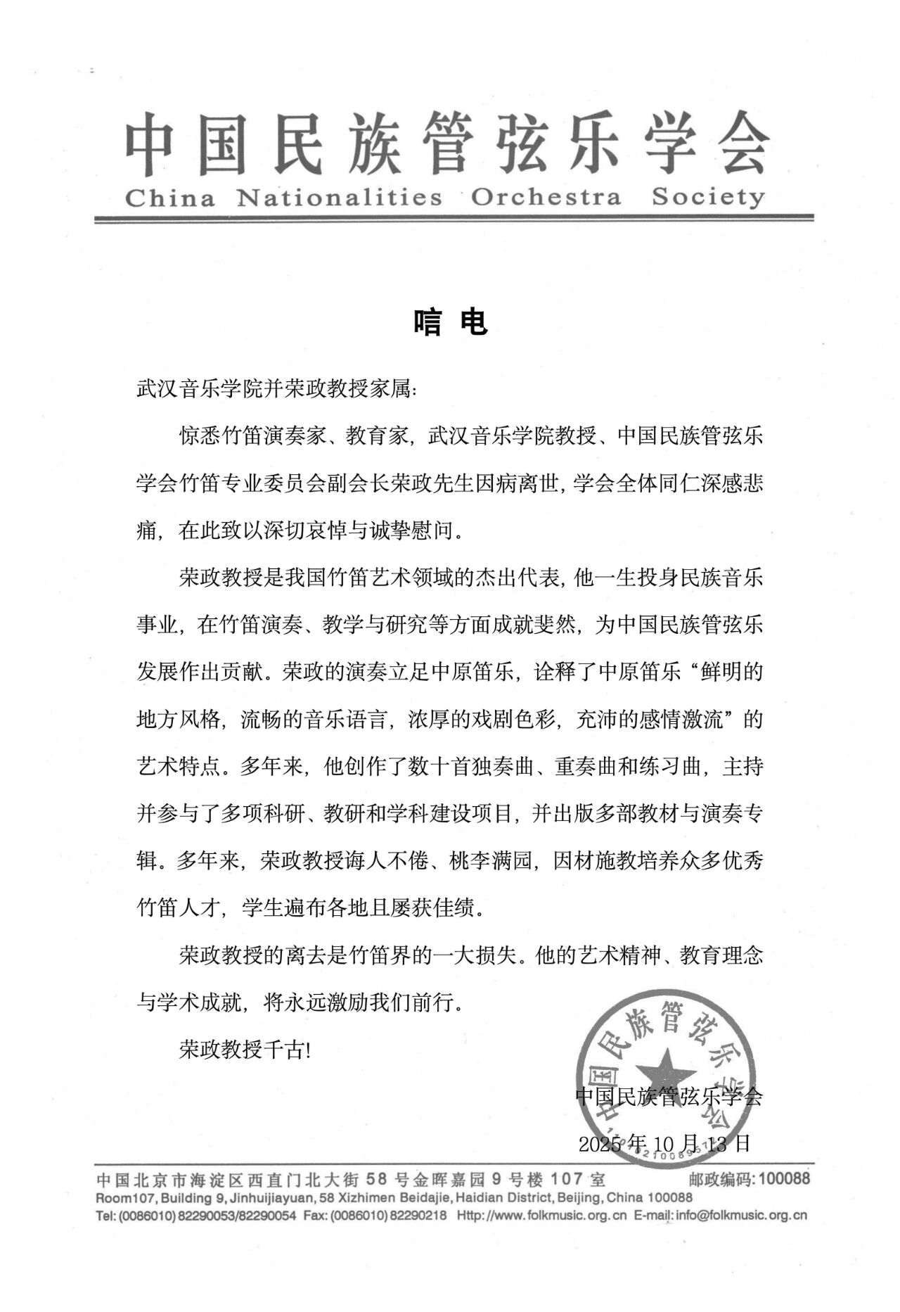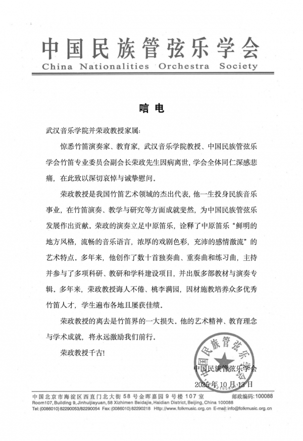 荣政教授出身艺术世家,1966年出生于湖北武汉,曾师从孔建华先生、李协勤先生,1990年以优异成绩毕业并留校任教。任教以来,他在教学、演奏、创作、科研等领域均取得了杰出的成就。他曾荣获国家级比赛“优秀指导教师”,并被武汉音乐学院授予“教书育人先进个人”“教书育人贡献奖”“武汉音乐学院优秀教师”“武汉音乐学院师德先进个人”“教书育人30年”等荣誉称号。