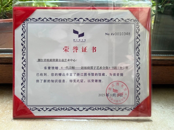 赵松庭先生是中国笛坛的一代宗师,他不仅技艺精湛,更以毕生精力深耕笛艺的整理、研究与传承。作为致力于传承和弘扬松庭笛派艺术的公益组织,浙江省松庭笛箫公益艺术中心希望通过此次捐赠,让赵先生的艺术思想与演奏技艺能通过公共文化平台,惠及更多热爱民族音乐的读者与研究者。这既是对赵先生艺术成就的最好致敬,也是中心践行公益使命的重要举措。